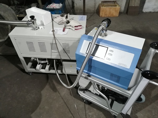 当容器的体积比较大,且需要进行真空检漏时,就需要使用茄子视频黄片下载搭配辅抽泵组一起来完成容器的内腔体泄漏检测。具体实施过程是将辅抽泵组与被检的容器连接后,通过泵组将腔体内部抽到一定的真空度,然后开启检漏仪,通过对容器表面可疑泄漏处(通常是焊缝、法兰连接等)喷吹氦气,观察检漏仪的读数,来寻找泄漏点。
